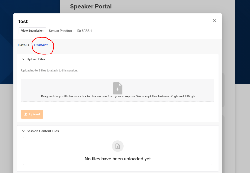First start by clicking on the session you would like to upload content for under “My Sessions “