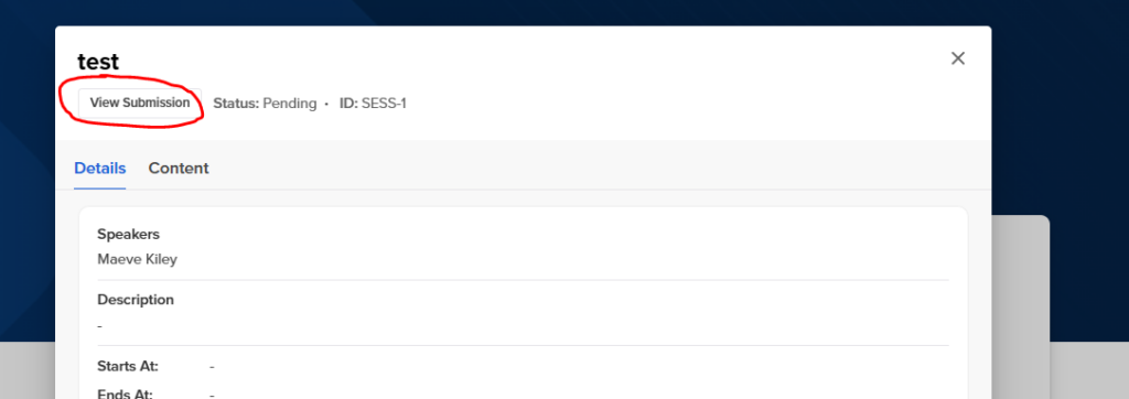 From there, click “View Submission” and provide the requested session and speaker information.