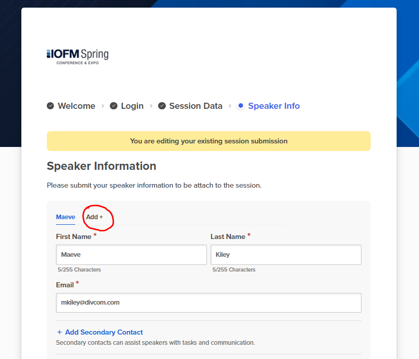 Please be sure to submit all speakers that will be speaking during your session